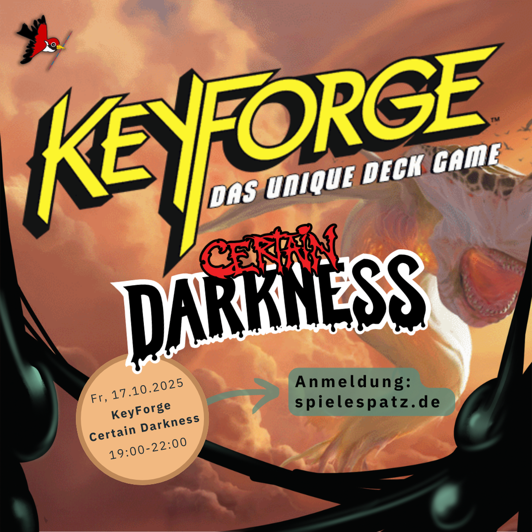 Am Fr, 17.10.25 startet unser KeyForge-Event Certain Darkness — und euch erwartet ein Wettlauf gegen das Übernatürliche!